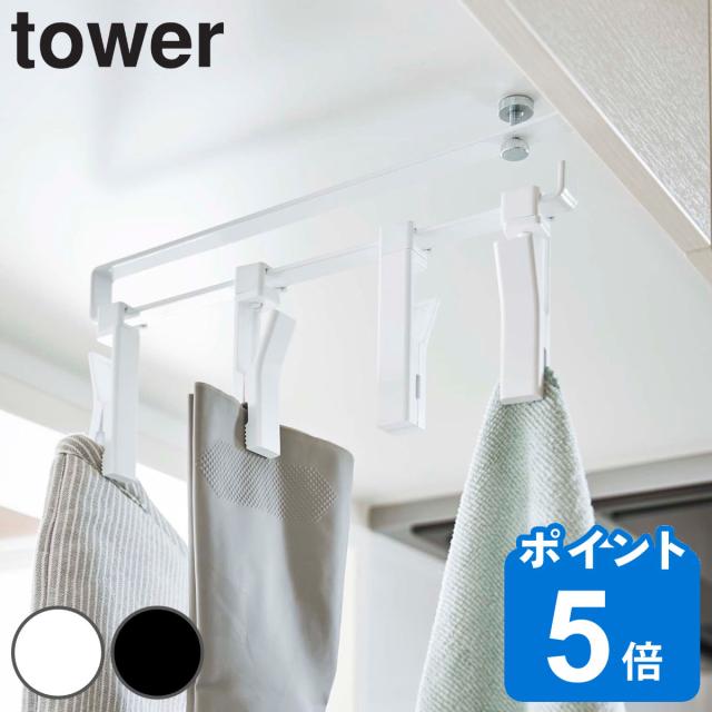 tower 戸棚下回転式クリップ タワー 4連 ( 山崎実業 タワーシリーズ キッチン 収納 キッチン小物収納 回転式クリップ ハンキングクリップ 小物クリップ 簡単 強力 ふきん 布巾 ちょい干し 小物干し 戸棚収納 小物収納 4P tower 山崎実業 キッチン 山崎実業 tower キッチン)