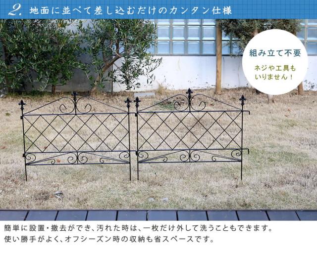 アプローチ ローフェンス 4枚セット (柵 間仕切り ガーデニング 園芸 庭 家庭菜園 花壇 エッジング 縁取り アンティーク モダン クラシック ラグジュアリー 上品 シンプル 黒 白 ブラック ホワイト おしゃれ おすすめ)