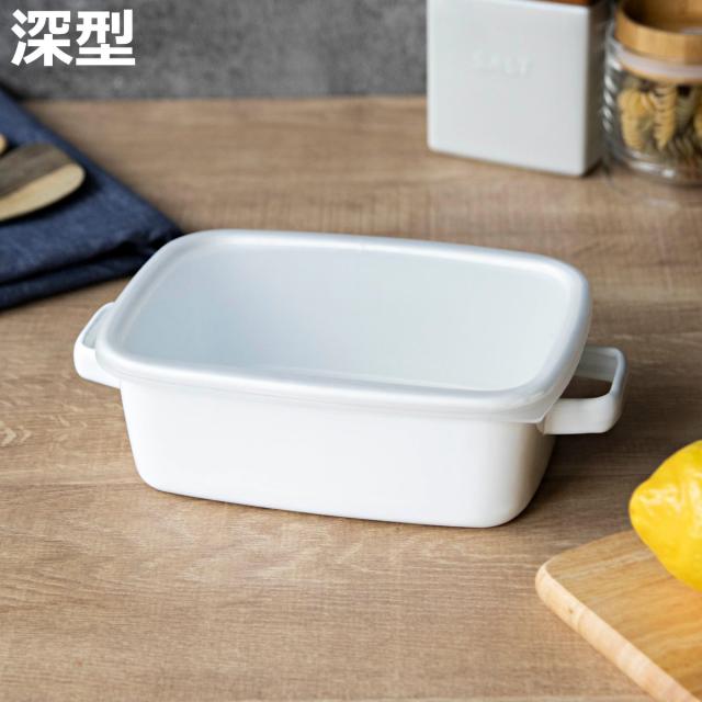 グラタン皿 18cm 深型 ホーロー ブランキッチン ( オーブン対応 オーブンウェア 耐熱皿 保存容器 バット ふた付き ホーロー製 琺瑯 作り置き 漬物容器 角型 アウトドア キャンプ 保温性 耐久性 お手入れ 簡単 持ち手付き )