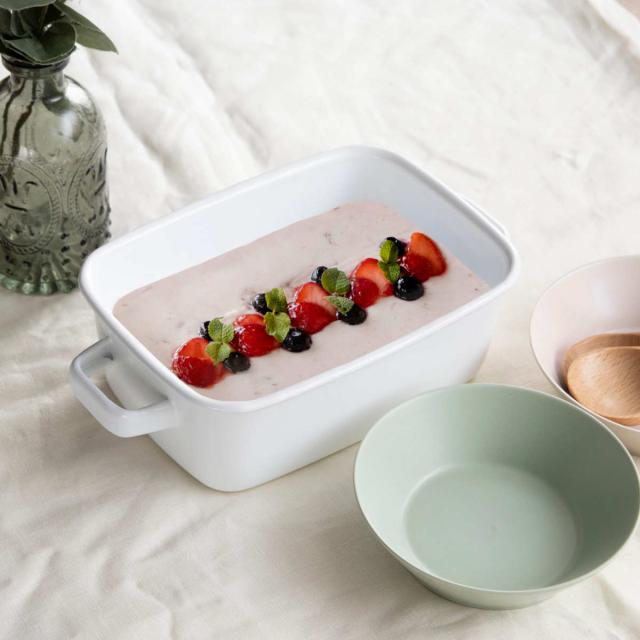 メイン料理だけでなくデザートにも使えます。ケーキ型にしたり、温めてそのまま冷蔵庫で冷やしたスイーツも楽しめます。爽やかで清潔感のあるホワイトカラーはどんな料理も美しく見せてくれます。