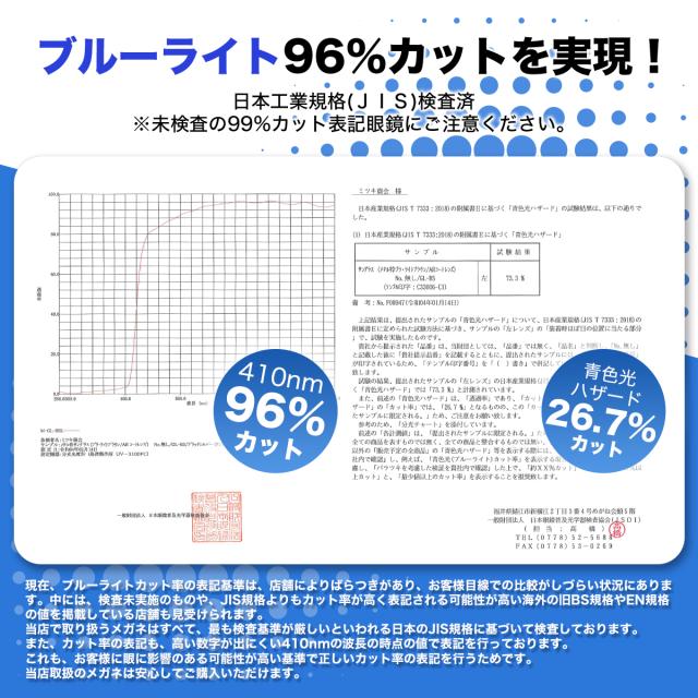 ブルーライトを最大96%カットできると、JIS検査済みです。