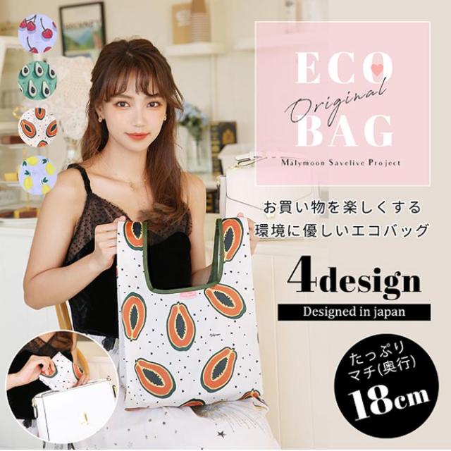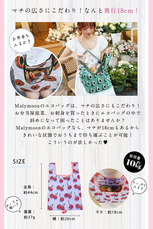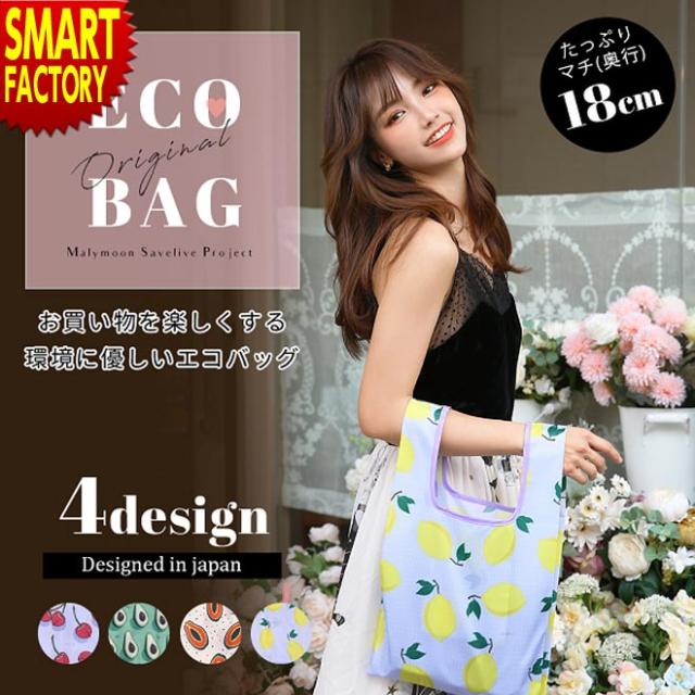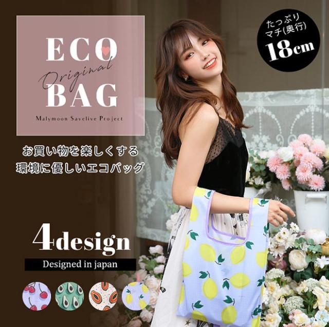 エコバッグ 折りたたみ レジ袋 マチ広 マリームーン オリジナルエコバッグフルーツ柄4タイプ コンビニサイズ コンパクト レジ袋 コンビニバッグ おしゃれ 軽量 大容量 柄 かわいい ショッピングバッグ Malymoon 日本郵便送料無料