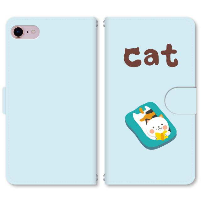 スマホケース 手帳型 iPhone13 iPhoneSE2 アイフォン 8 aquos sense GooglePixel xperia galaxyなど多機種制作対応 m3466_読書ねこ