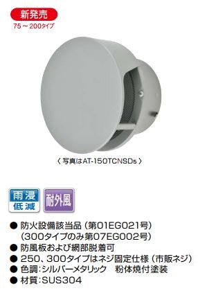 MELAT/メルコエアテック 換気部材【AT-150TCNSK5】外壁用(ステンレス製) 丸形防風板付ベントキャップ(覆い付) φ150 防火ダンパー付 網〔HF〕