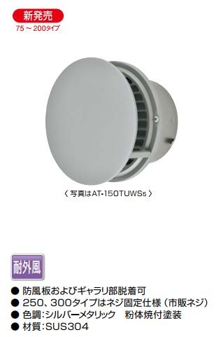 MELAT/メルコエアテック 換気部材【AT-150TUWS5】外壁用(ステンレス製) 丸形防風板付ベントキャップ φ150 横ギャラリ・網〔HF〕