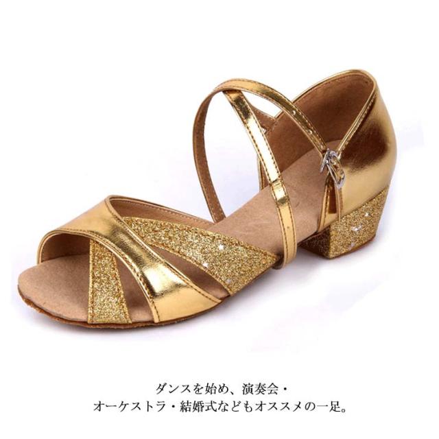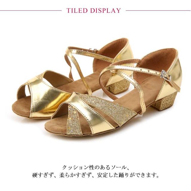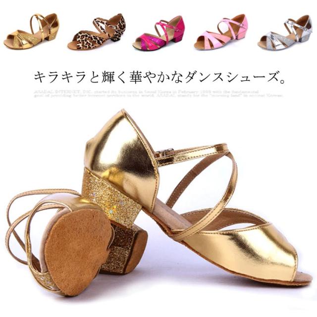 子供靴 ジャズダンス レディース ラテンダンス ダンスシューズ サンダル 室内用 練習靴 社交ダンス ローズ スエードソール ゴールド シルバー ピンク グリッター
