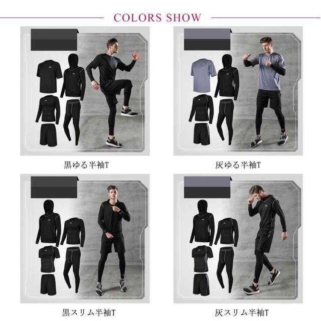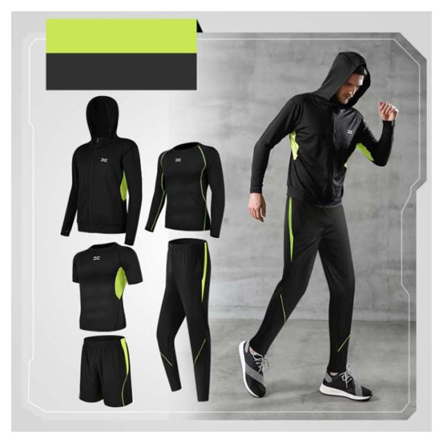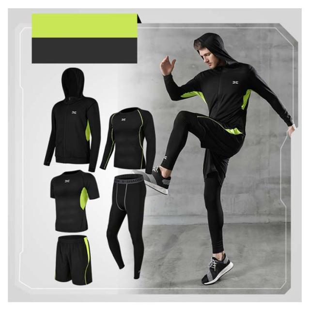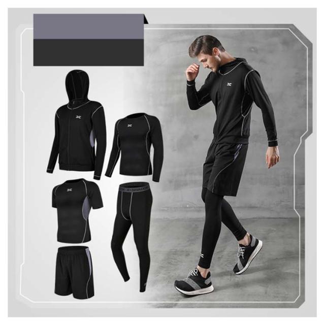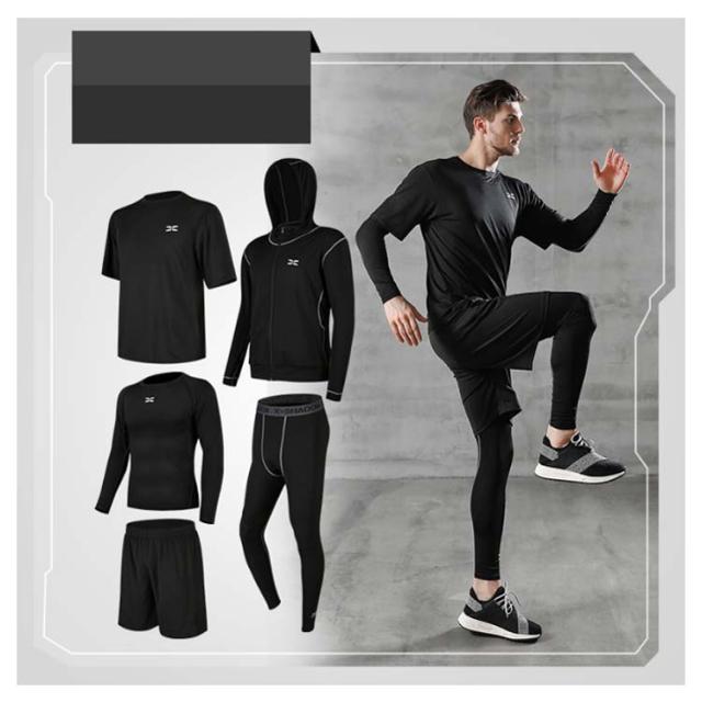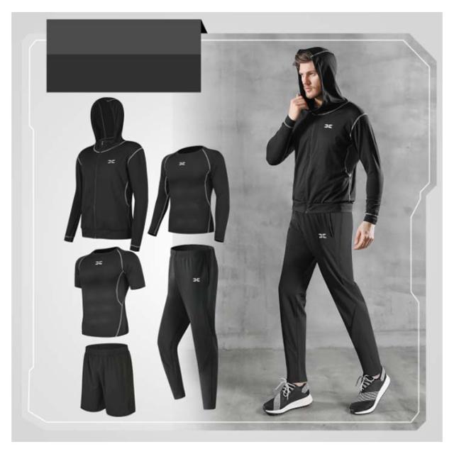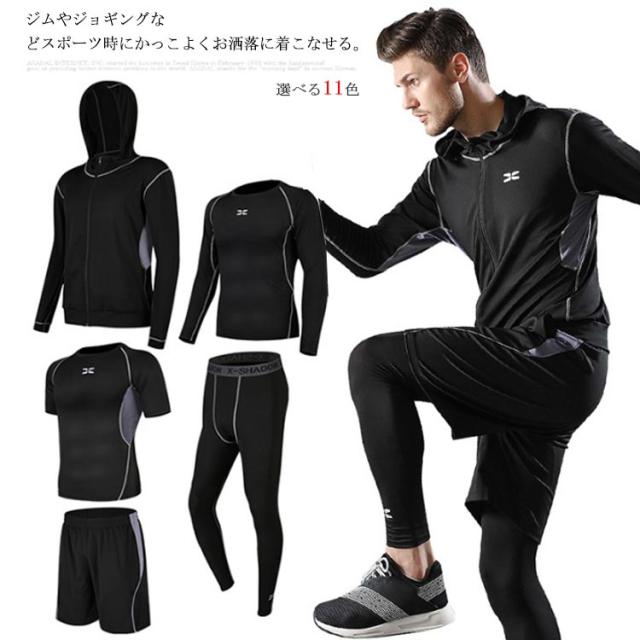 スポーツウェア ヨガウェア 5点セット ジャージ 上下セット 吸汗 コンプレッションウェア トレーニングウェア ジム メンズ