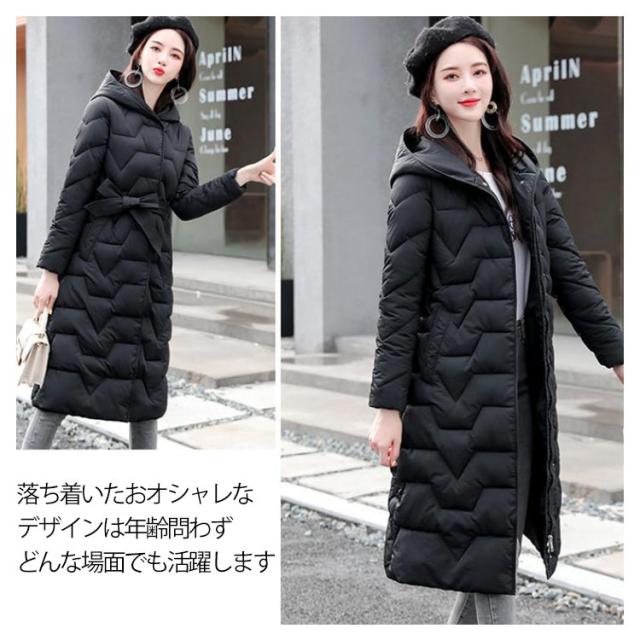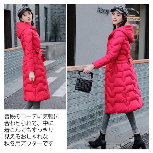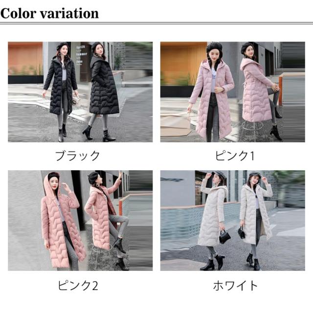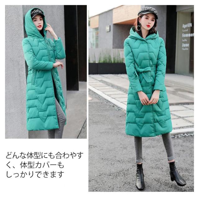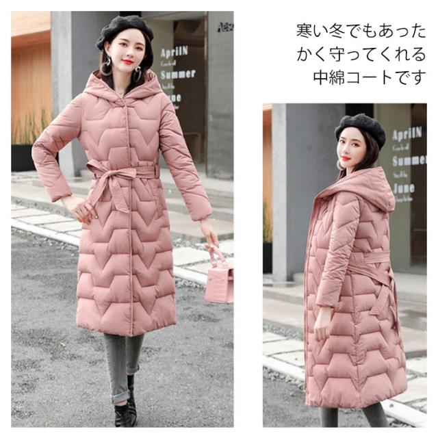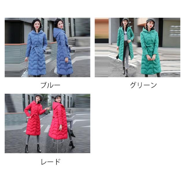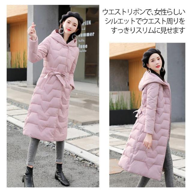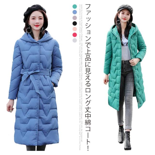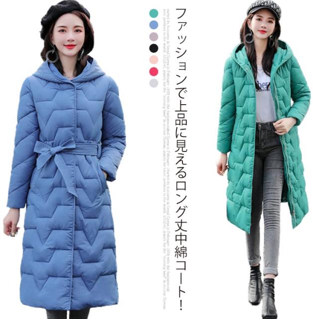 冬服 ロングコート 中綿ジャケット 防風 中綿コート ウエストリボン コート 軽い カラバリ かわいい 軽量 暖か 防寒 綿入れ レディース ロング丈 帽子付き お洒落 無地 アウター 大きいサイズ 中綿 コート レディース きれいめ カジュアル 羽織り