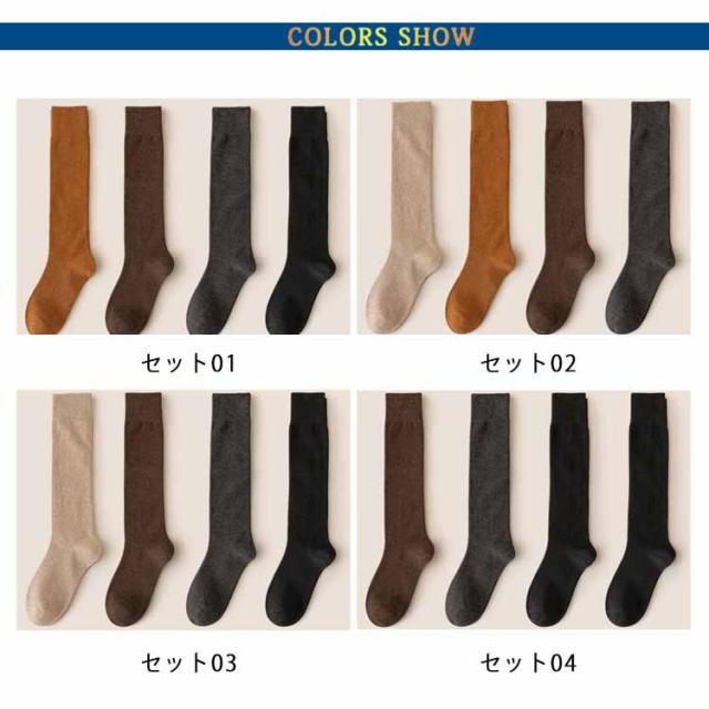 4足セット あったか 靴下 ニットソックス レディース 靴下 ロングソックス フットウェア 厚手 靴下 ハイソックス 無地 靴下 防寒 ソックス 靴下 ひざ下丈 秋冬 ひざ下 ソックス かわいい ソックス 冬用