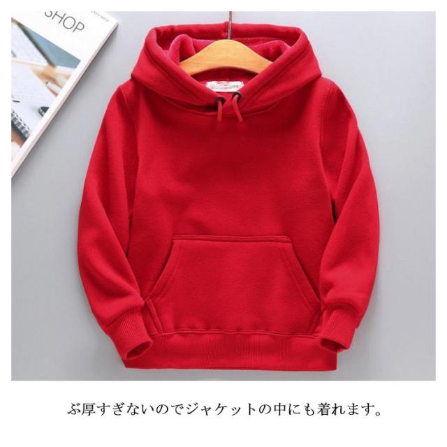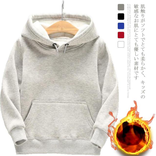 プルオーバー インナー パーカー 暖かい 裏起毛 フード付き 長袖 厚手 子供服 女の子 通学 150 防寒服 ゆったり 男の子 トップス 裏ボア キッズ 通園 黒 白 110 120 130 140 無地