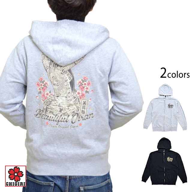 手描き風花魁スウェットジップパーカー CHIGIRI CHL48-883 ちぎり チギリ 和柄 和風