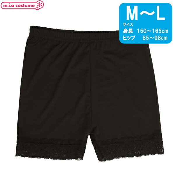 1251B■ML/LLL【送料無料・即納】 TE-18SS 一分丈スパッツレース付き サイズ:M-L スクール 普段使い 黒 ブラック フリル シンプル