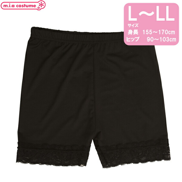 1251B■ML/LLL【送料無料・即納】 TE-18SS 一分丈スパッツレース付き サイズ:L-LL スクール 普段使い 黒 ブラック フリル シンプル
