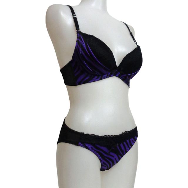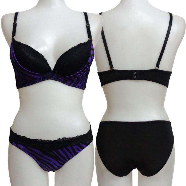 ゼブラプリント生地とブラックレースのセクシーなブラジャー&ショーツ