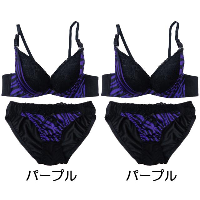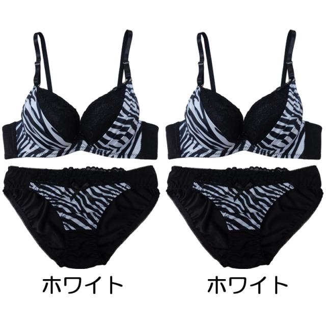 ゼブラ柄×ブラックレースブラジャー&ショーツセット ブラ ショーツ セット ブラセット ブラジャー ランジェリー ゼブラ アニマル セクシー B70 B75 C70 C75 D70 D75 レディース 女性 下着 メール便送料無料
