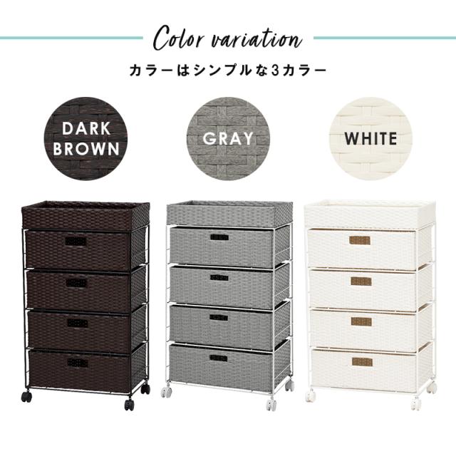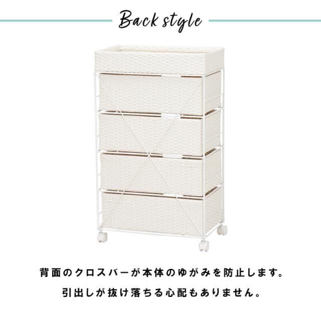 ランドリーラック 4段 幅50.5cm ラタン調 完成品 収納 かご カゴ 籠 棚 すき間収納 スリム ランドリーバスケット キャスター ランドリーチェスト 洗面所 サニタリー 脱衣所(代引不可)【送料無料】