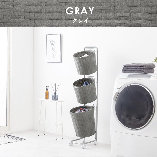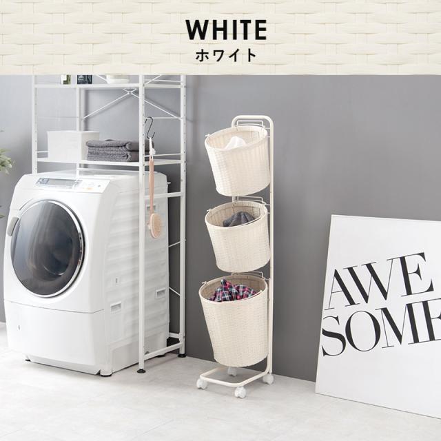 ランドリーラック 3段 幅35 ラタン調 完成品 収納 かご カゴ 籠 棚 すき間収納 スリム ランドリーバスケット キャスター ランドリーチェスト 洗面所 サニタリー 脱衣所(代引不可)【送料無料】