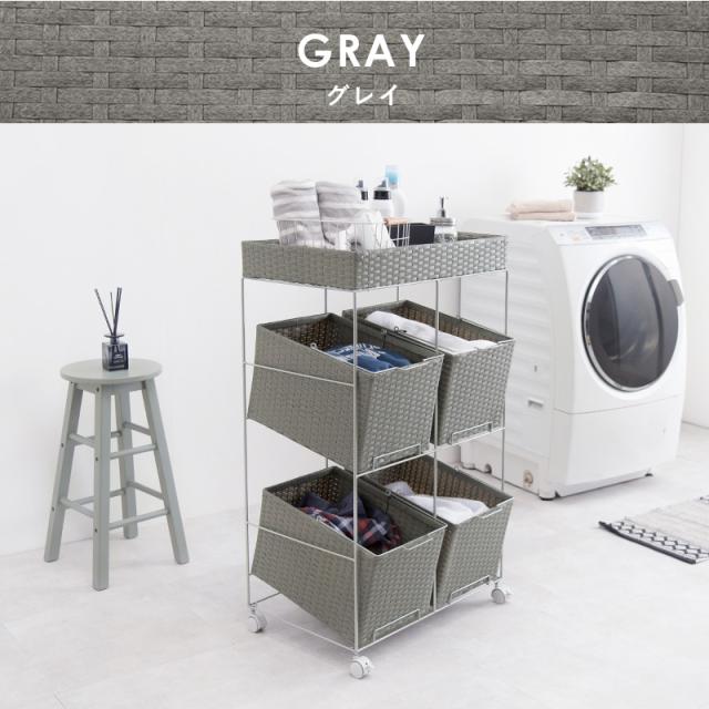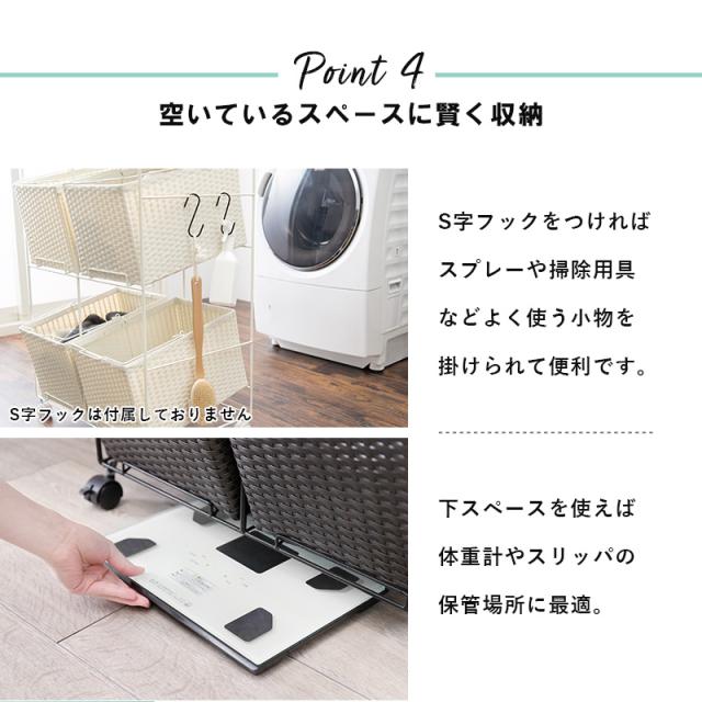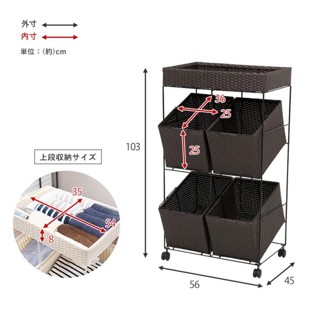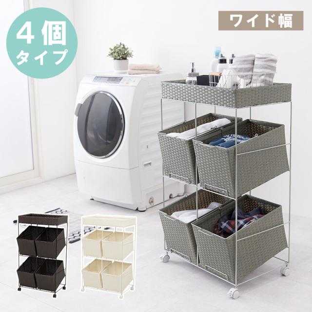 ランドリーラック 4杯 引き出し 幅56cmラタン調 完成品 収納 かご カゴ 籠 棚 すき間収納 スリム ランドリーバスケット キャスター ランドリーチェスト 洗面所 サニタリー 脱衣所(代引不可)【送料無料】