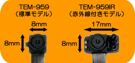 | レンズ | 画角65度 レンズ部サイズ8×8×6mm (TEM-959) レンズ部サイズ8×17×7mm (TEM-959IR) レンズケーブル 160mm |