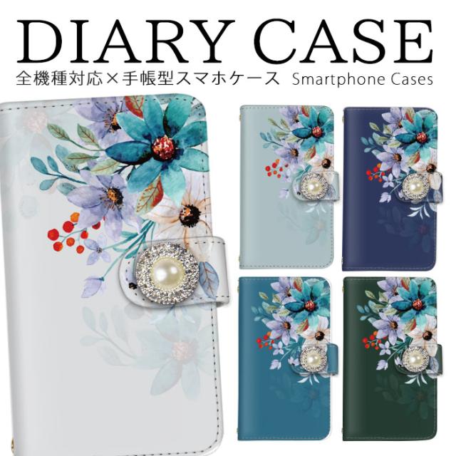 スマホケース 手帳型 60代女性 ミラーオプション キッズスマホケース花柄 手書き風 水彩風 デコ付き 【丸デコ】 Galaxy S23 Ultra SC-52D Galaxy A54 5G SC-53DXperia Ace III SO-53C iPhone 12 Pro Xperia 10 IV SO-52C