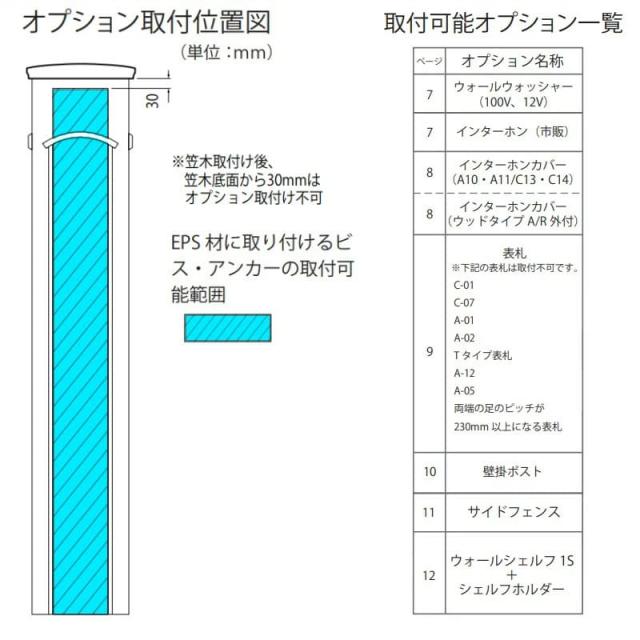 表札やポストを取り付ける場合は以下の取付部品が別途必要です。