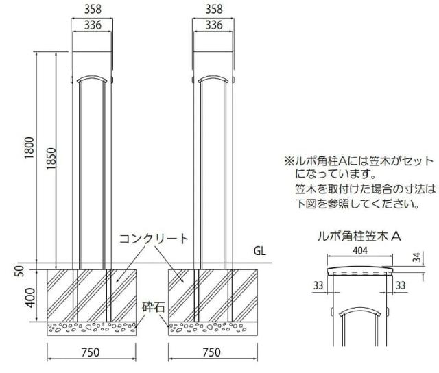 ・サイズ(笠木含む):H1886/W404/D404 mm(GL上 H 1836)