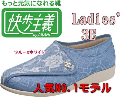 快歩主義L011 ブルーホワイト 3E 婦人 外出用 両足販売 つまずきにくい靴 母の日敬老の日 アサヒコーポレーション