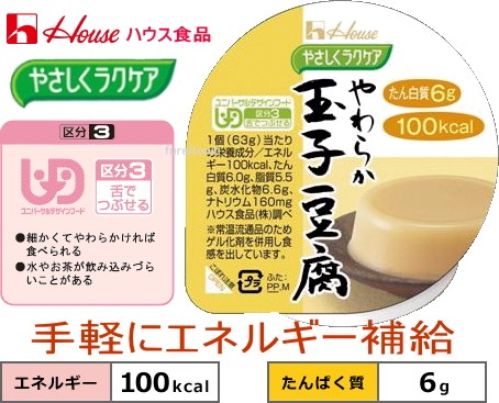 やさしくラクケア 100kcalやわらか玉子豆腐 ハウス食品やさしくラクケアシリーズ 1食当たりたん白質6g摂取