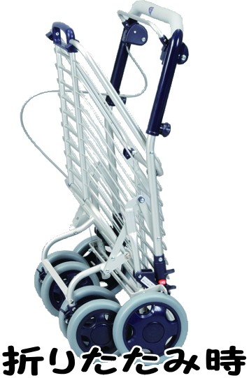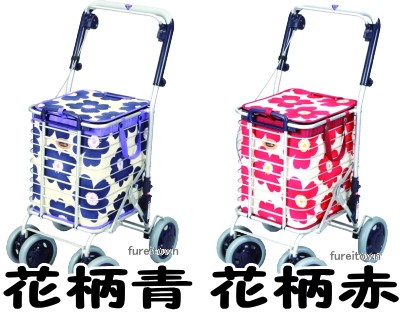 アルミワイヤーカート・カラー:花柄青・雨やホコリから食品などを守るバッグ付。・カゴを載せてらくらくお買い物。(送料無料)
