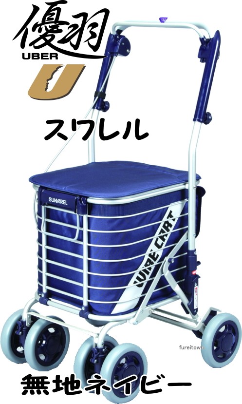 スワレル 無地ネイビー お洒落な4輪ショッピングカート 座れるタイプカゴを載せてらくらくお買い物 送料無料 おしゃれ 座れる 散歩 シニア 歩行補助 買い物 ショッピングカー 大容量 老人車 手押し車 介護 人気 送料無料 高齢者
