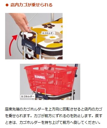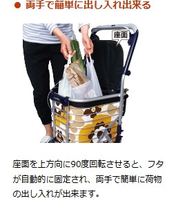 【送料について】北海道、沖縄、離島は別途送料を頂きます。・さりげなくお洒落にショッピング。 好評を頂いているアルミワイヤーカートに、座ることのできる機種を追加いたしました。●サイズ/幅50×奥行48×高さ87〜96.5(3段階/4.75cm)cm、折りたたみ時:奥行27.5×高さ77.5cm ●車輪サイズ/前輪15×後輪15cm ●重さ/4.8kg●バッグ容量/25L ●積載荷重/10kg ●材質/本体:アルミニウム●最大使用者体重/80kg ●生産国/日本 ●標準機能/折りたたみ式、ハンドル高さ調整、2WAYキャスター(360°・固定)、手元ブレーキ・手元駐車ストッパー