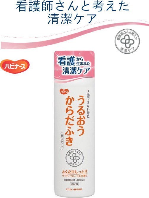ピジョンハビナース1018700/11043 うるおうからだふき 液体タイプ 400ml(約80回分)お湯に溶かしてふくだけですすぎは不要ウッディフローラルの上品な香り植物性保湿成分配合弱酸性 看護師共同開発 清拭/清拭剤/清拭液