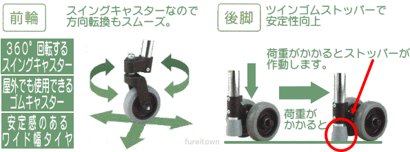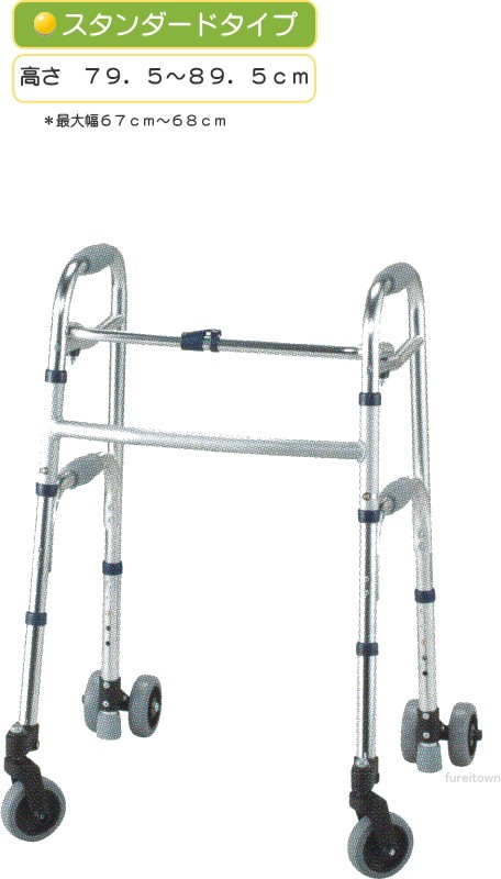 【送料について】北海道、沖縄、離島は別途送料を頂きます。自在に動いて歩行がスムーズ。・幅広の大型ゴムキャスターを採用、屋外での使用にもおすすめです。・安定感を高めたツインゴムストッパーは、上から荷重をかけることで作動。●サイズ/幅69.5×奥行59×高さ88.5-98.5cm、収納時:幅64×奥行13.5×高さ82.5cm●重さ/約4.8kg●材質/本体:アルミ(一部スチール)、握り手:合成ゴムキャスター付歩行器一覧へ
