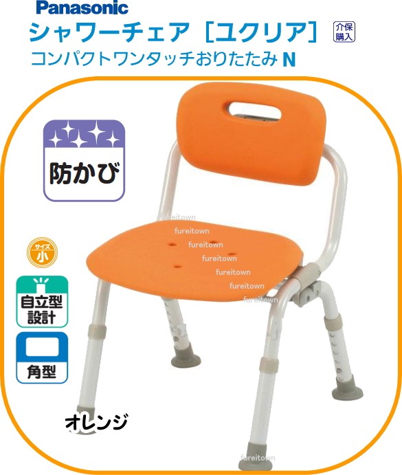 PN-L41421D パナソニック シャワーチェア[ユクリア] コンパクトワンタッチおりたたみN オレンジ 背付き、ひじなしタイプ