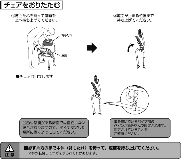 | 標準機能 | 折りたたみ、 座面高さ調整(6段階/2cmピッチ) |
