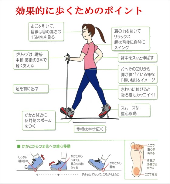 せっかく運動をするのですから、最大X1.5倍の効率を期待できる「ポール ウォーキング」で