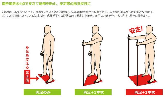 両手にそれぞれ杖を持って、【安全に「歩く」を支える】ウォーキングポールです。