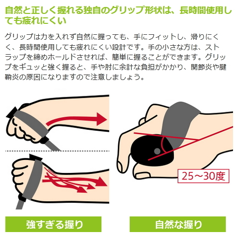 グリップの赤い方を右手[R]、グレーの方を左手[L]にお持ちください。