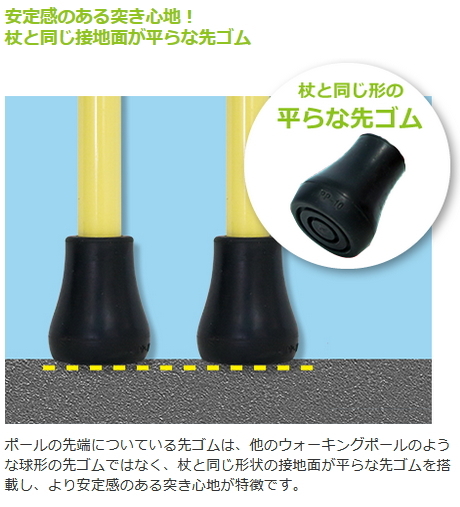 専用ポールを持つだけで正しい姿勢のまま歩幅を広げてバランスよく歩けるようになり、