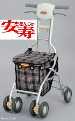 安寿 サンフィールショッピング 532-342青チェック 前輪Wキャスターで安定歩行 ワンタッチ高さ調整【送料無料】折りたたみ 手押し車 老人 軽量 コンパクトアロン化成 介護 福祉 サービス 高齢 者 デイ サービス シニア