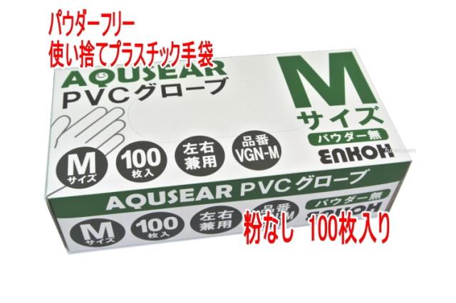 プラスチック手袋 パウダーフリー プラスチックグローブ PVCグローブ Mサイズ 100枚入り/箱 介護 粉なしタイプ ディスポ使い捨て手袋