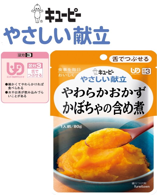 介護食 キューピー やさしい献立 やわらかおかず かぼちゃの含め煮 80g かぼちゃとやわらかく仕上げた鶏肉をじっくり煮込み、甘めに仕立てました。区分3 舌でつぶせる おかず