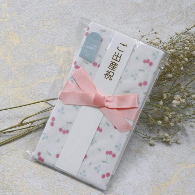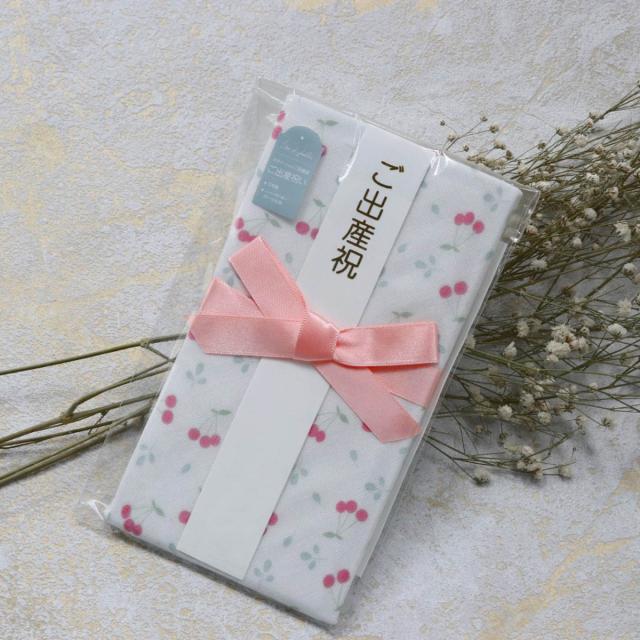 ご祝儀袋 Lien de famille チェリーリーフ柄 スタイ 出産祝い ( 御祝儀袋 お祝儀袋 金封 よだれかけ ベビースタイ エプロン 赤ちゃん プレゼント 日本製 ベビーエプロン お食事エプロン ベビー 女の子 男の子 おしゃれ )