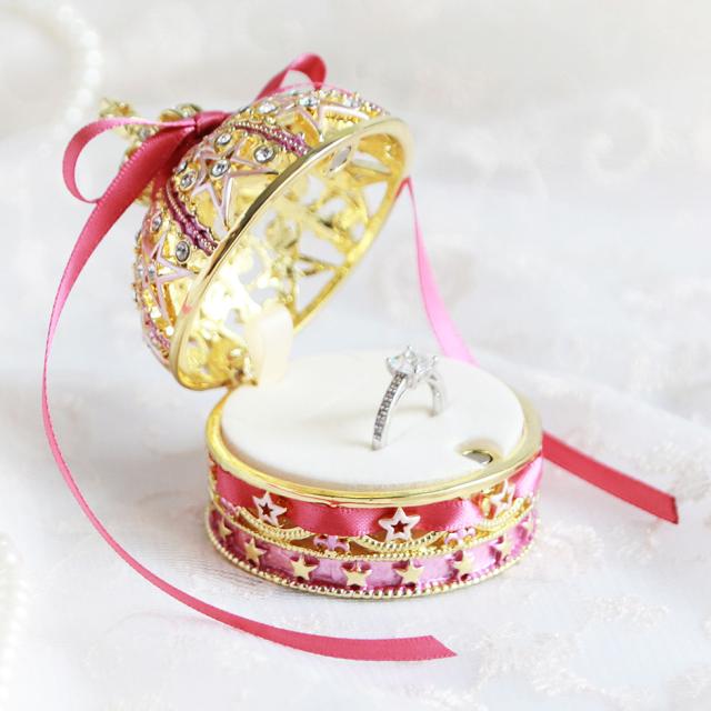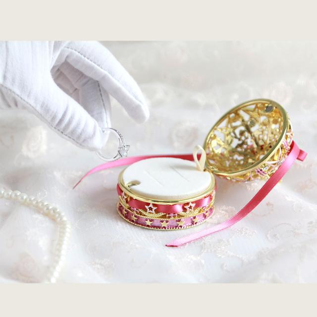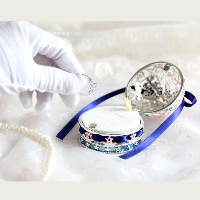 大切なリングを傷付けないよう、中にはリングピローをセットしています。