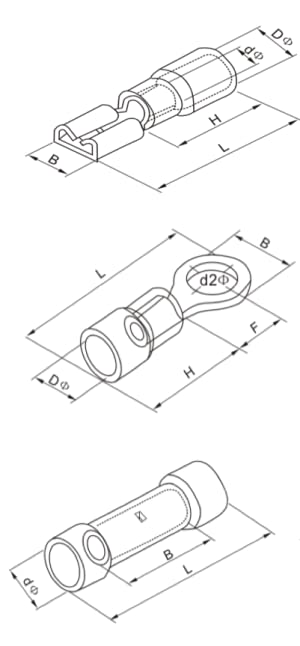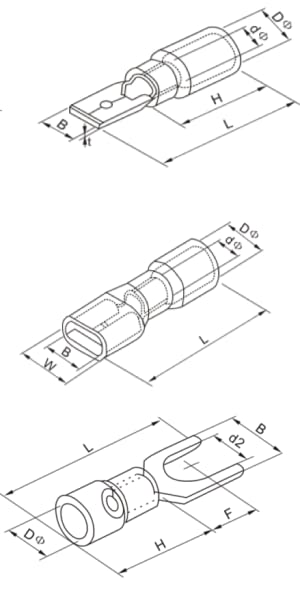 2. 防水型ビニル絶縁付丸形端子(ストレート形・F形・1/4")