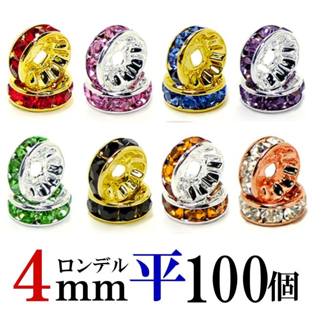 平 ロンデル 4mm 100個 シルバー/ゴールド/ピンクゴールド ハンドメイド アクセサリーパーツ 材料 銀色 金色 アクセサリー パーツ ハンドメイドパーツ ラインストーン 平ロンデル 平型 スペーサー ビーズ 天然石 パワーストーン ブレスレット