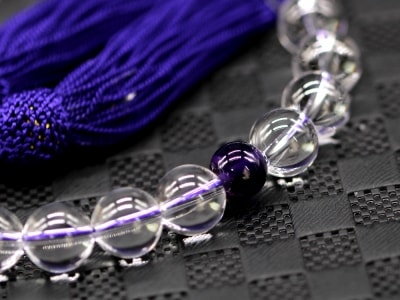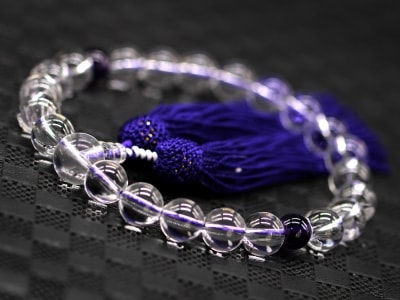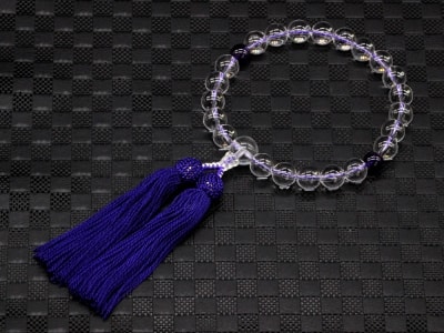 「職人仕立て」 男性用 女性用 数珠 12mm 本水晶 / 紫水晶(アメジスト) 念珠 略式数珠 メンズ レディース 仏具 神具 天然石 パワーストーン 人絹頭付房 葬式 葬儀 法事