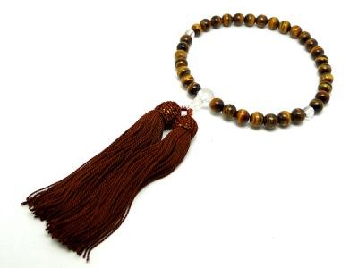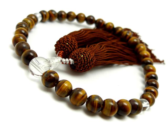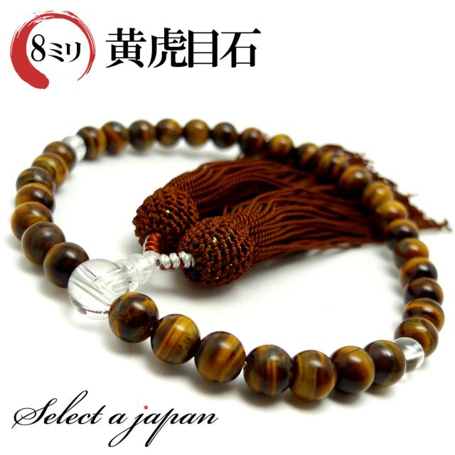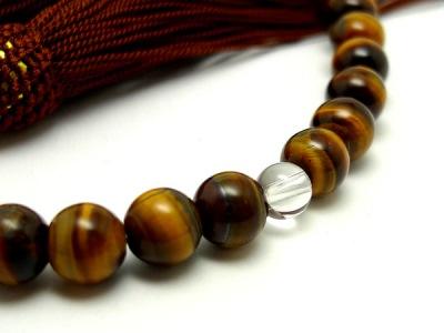 「職人仕立て」 男性用 数珠 8mm 虎目石(タイガーアイ) 念珠 略式数珠 メンズ 仏具 神具 天然石 パワーストーン 人絹頭付房 葬式 葬儀 法事 イエロータイガーアイ