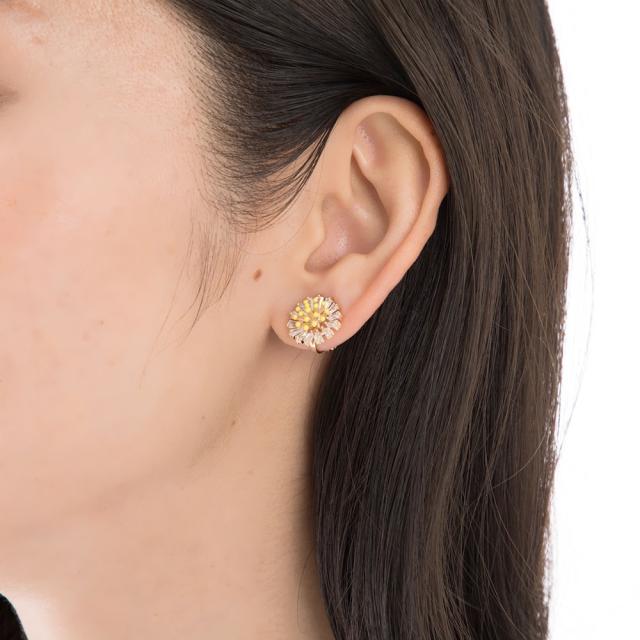 イヤリング レディース CZ タンポポ 花 ジュエリー アクセサリー シンプル カジュアル 大人 ワンポイント 女性用 上品 ゴージャス エレガント プレゼント ギフト