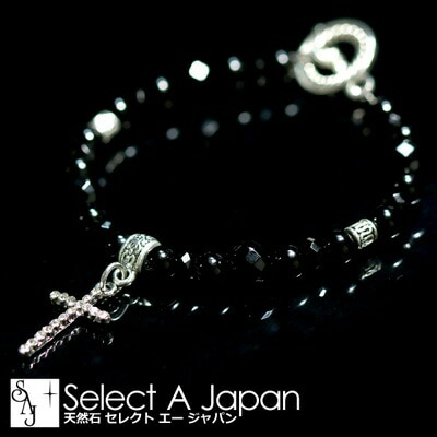 「CROSS」 オニキス ブレスレット パワーストーン ブレスレット メンズ 天然石 数珠 アクセサリー メンズブレスレット パワーストーンブレスレット 天然石ブレスレット 男性用 厄除けブラック 黒 留め金式 留金式 止め金式 止金式 十字架 クロス